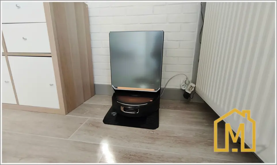 Le design est soigné et la station s’intègre facilement dans un intérieur. Elle se montre surtout très autonome : sac à poussière de 2,5 L annoncé pour jusqu’à 120 jours, vidange automatique, réservoirs d’eau faciles à retirer, filtre lavable et cycle de nettoyage à haute température. À noter, il existe deux versions de la station : une version standard et une version compacte, cette dernière pouvant être directement raccordée aux réseaux d’eau.